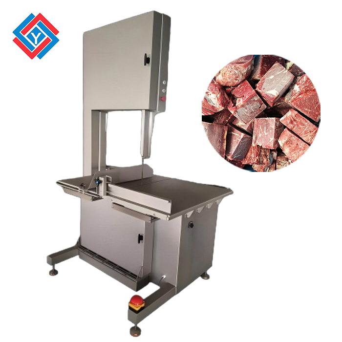 大型鋸骨機JY-600適合各種帶骨冷凍肉或冷藏肉及魚類進行切斷加工。切割厚度調節方便,可以隨時調節,產品厚度均勻一致,切面整齊光滑。 設備清洗時無需任何工具,手動操作即可,方便快捷。只有在更換鋸條時才需要進行調整,以獲得更好的操作性能。